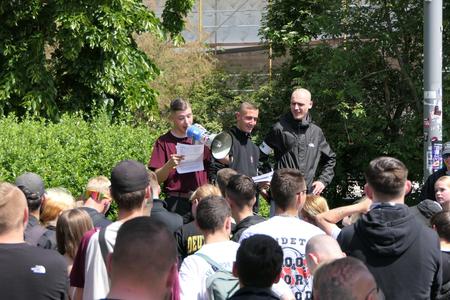 Am Sonntag, dem 01.06.2025, fand in Berlin-Mitte ein rechter Aufmarsch unter dem Titel „Gegen Volksverrat und gegen Übergriffe auf unser Volk“ statt. Lediglich rund 60 überwiegend junge Neonazis versammelten sich am Auftaktort an der Karl-Marx-Allee trotz überregionaler Mobilisierung aus den Kreisen von »Deutsche Jugend Voran« und »Gersche Jugend«. Unterstützung bei der Durchführung gab es von der Gruppierung »Chemnitz Revolte«, die u.a. mit Megaphon die Parolen vorgab. Bereits vor Beginn verließen Neonazis mit einer »Deutsche Voran«-Fahne den Platz.